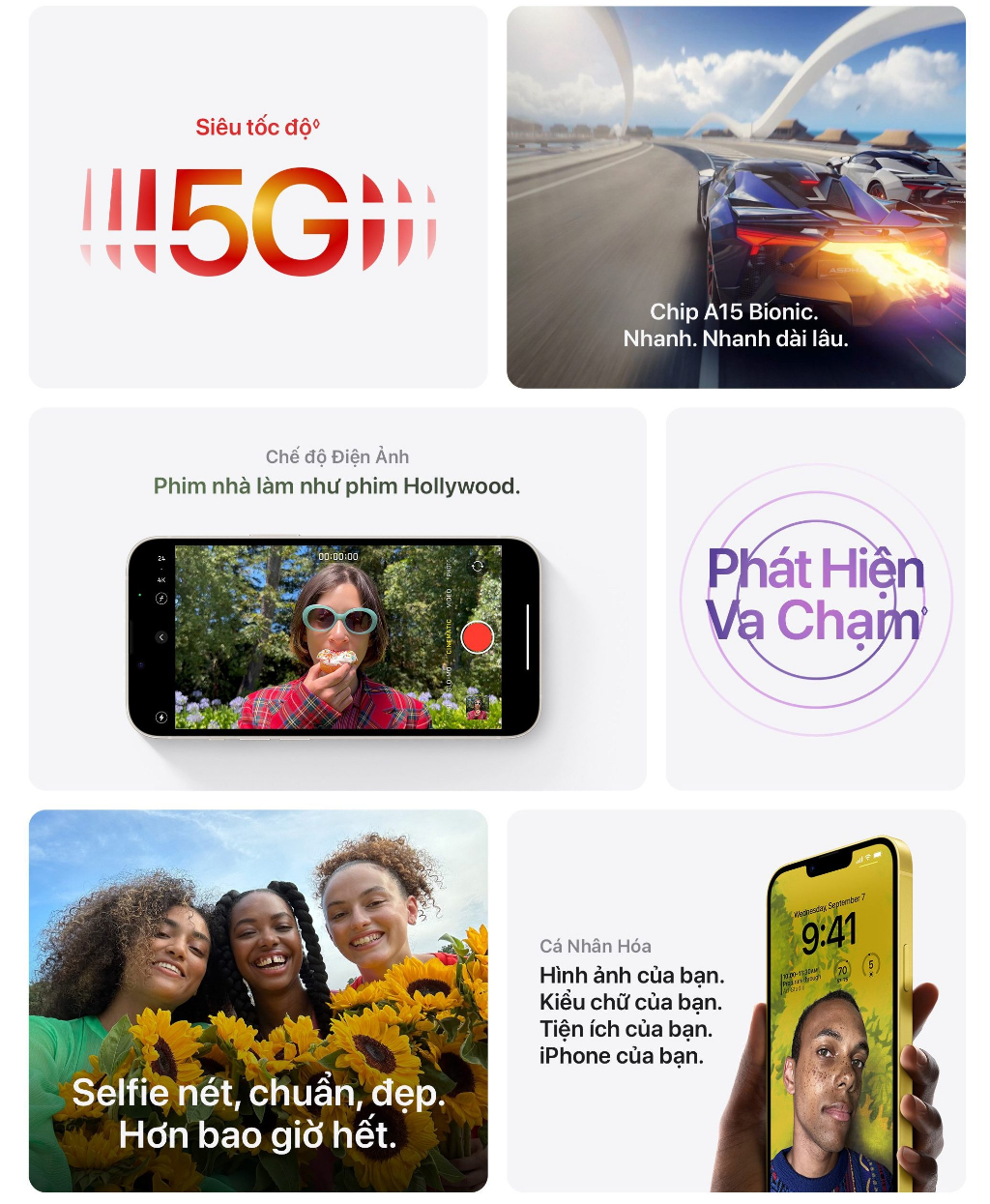 • Chip A15 Bionic với GPU 5 lõi để đạt hiệu suất siêu nhanh. Mạng di động 5G siêu nhanh4