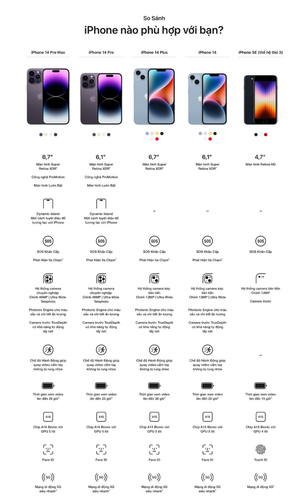 Truy cập apple.com/iphone/compare để xem cấu hình đầy đủ.