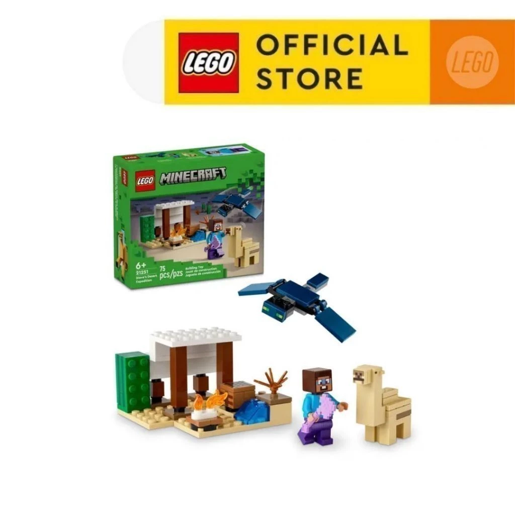 • LEGO Minecraft® – Bộ trò chơi bao gồm một nhân vật minifigure của nhân vật Minecraft nổi tiếng Steve, nhân vật Lạc đà con và nhân vật Bóng ma đang bay với đôi cánh có thể cử động được. Các mảnh ghép Minecraft quen thuộc, bao gồm bàn chế tạo, nơi trú ẩn, lửa trại, rìu, Lạc đà con và đồ chơi xương rồng nhỏ