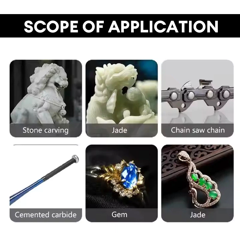 Đánh bóng: Đầu đánh bóng này không chỉ có thể được sử dụng để sửa chữa các vết răng cưa của xích mà còn có thể đánh bóng các vật liệu như ngọc bích.