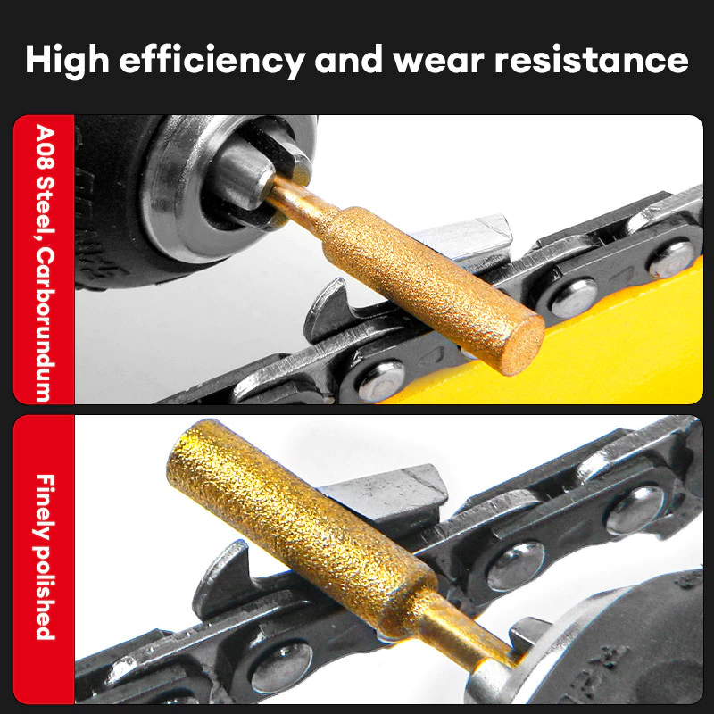 Đánh bóng xích: Nhanh chóng sửa chữa các vết răng cưa của xích, cải thiện hiệu suất cắt và kéo dài tuổi thọ của xích.