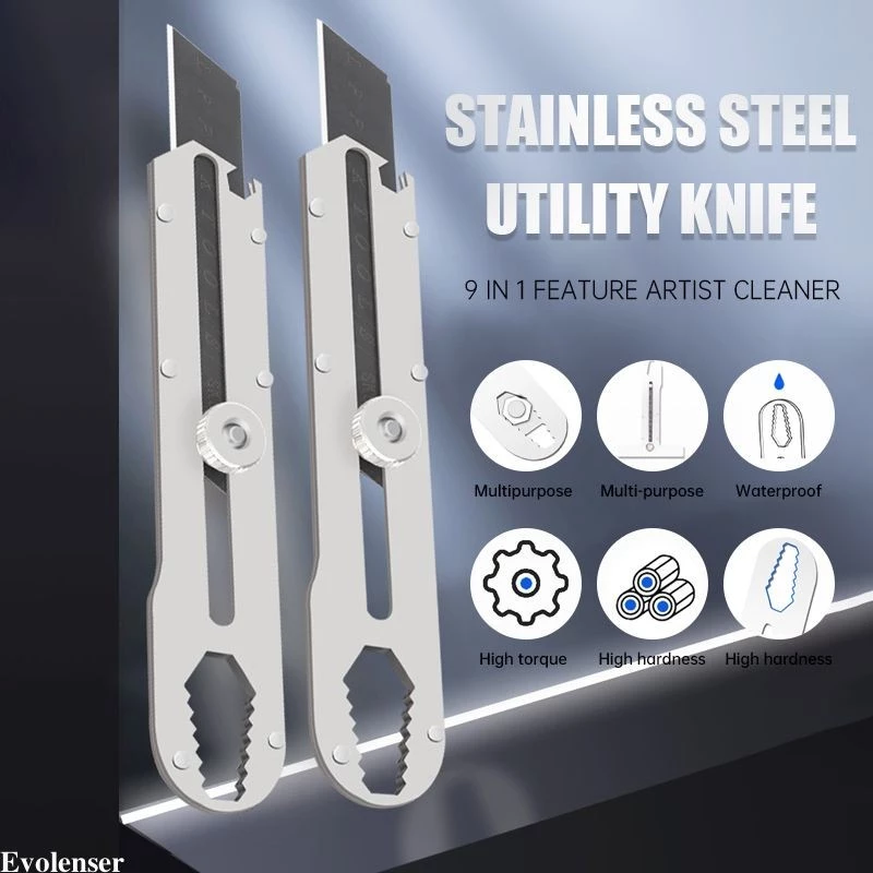 Máy cắt nghệ thuật bằng thép không gỉ Cờ lê 9 trong 1 Máy cắt nghệ thuật tỷ lệ chia độ Máy cắt giấy sắc nét Tính năng Thép không gỉ, có thể thu vào, dày, nặng,