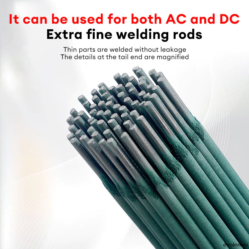 Thiết kế: Thiết kế thanh hàn siêu mỏng, phẩy nhỏ, loại bỏ slag dễ dàng, hồ quang ổn định, thích hợp cho cả hàn AC và DC của các bộ phận mỏng 0,5 – 2mm.