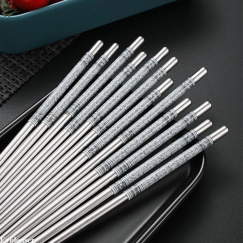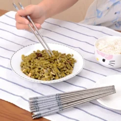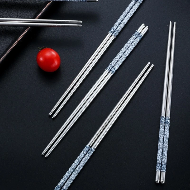 Đặc điểm: Ưu điểm của đũa inox là không dễ mốc và dễ lau chùi.