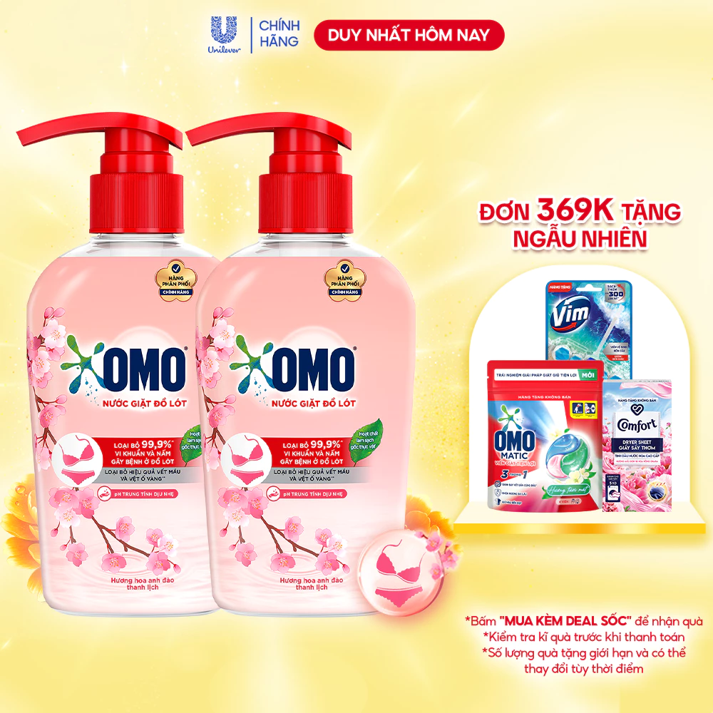Giới thiệu NƯỚC GIẶT ĐỒ LÓT CHUYÊN DỤNG OMO! Với thành phần tiên tiến giúp giặt sạch các vết bẩn cứng đầu, loại bỏ 99,9% vi khuẩn và nấm gây bệnh ở đồ lót cùng công thức dịu nhẹ cho vùng da nhạy cảm.