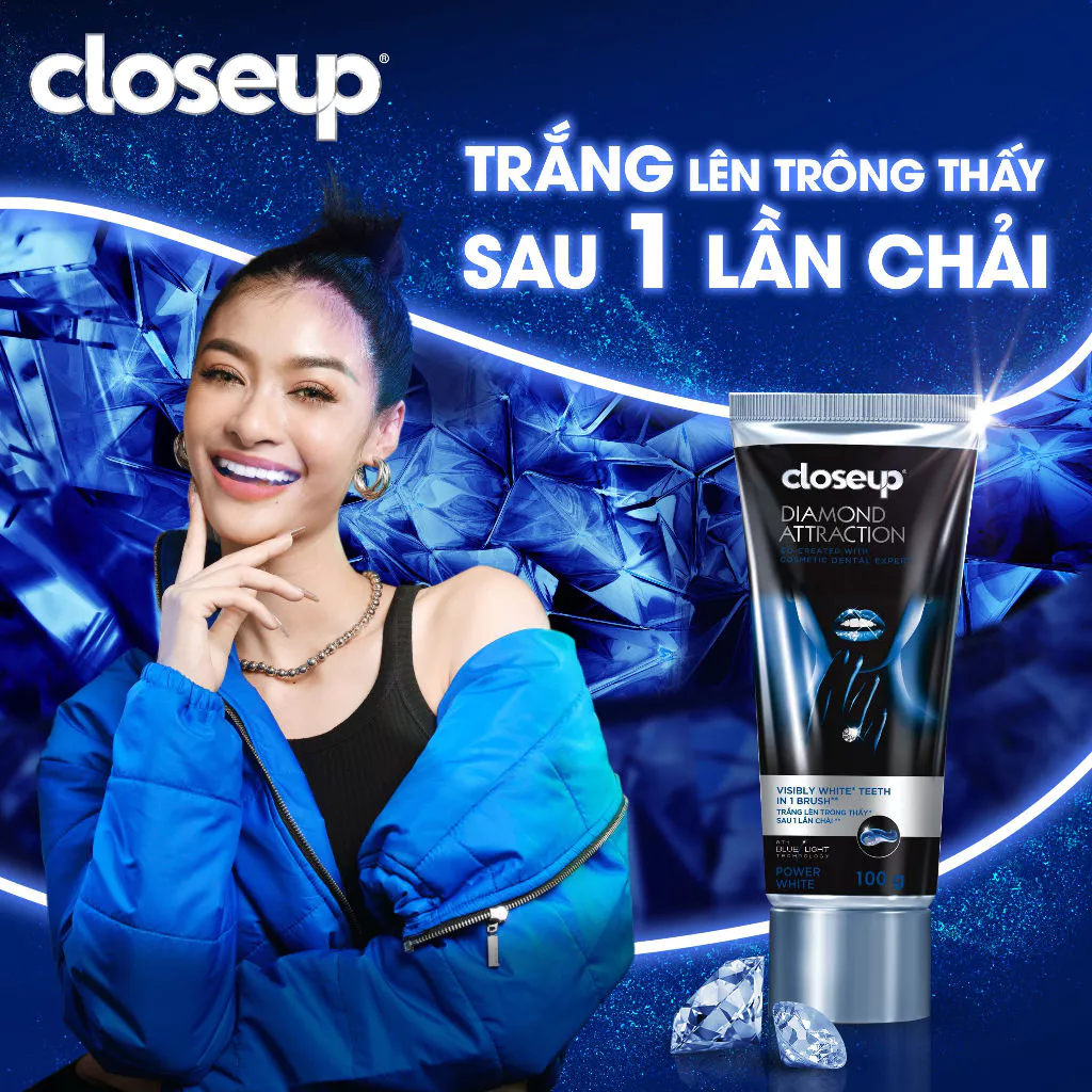 HƠI THỞ THƠM MÁT, SÁT LẠI GẦN NHAU VỚI KEM ĐÁNH RĂNG CLOSEUP TRẮNG RĂNG DIAMOND ATTRACTION