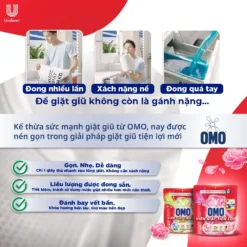 Thừa hưởng sức mạnh đánh bay vết bẩn cứng đầu và mùi hôi từ OMO, nay OMO mang đến một giải pháp giặt giũ tiện lợi mới – gọn, nhẹ và dễ dàng sử dụng.