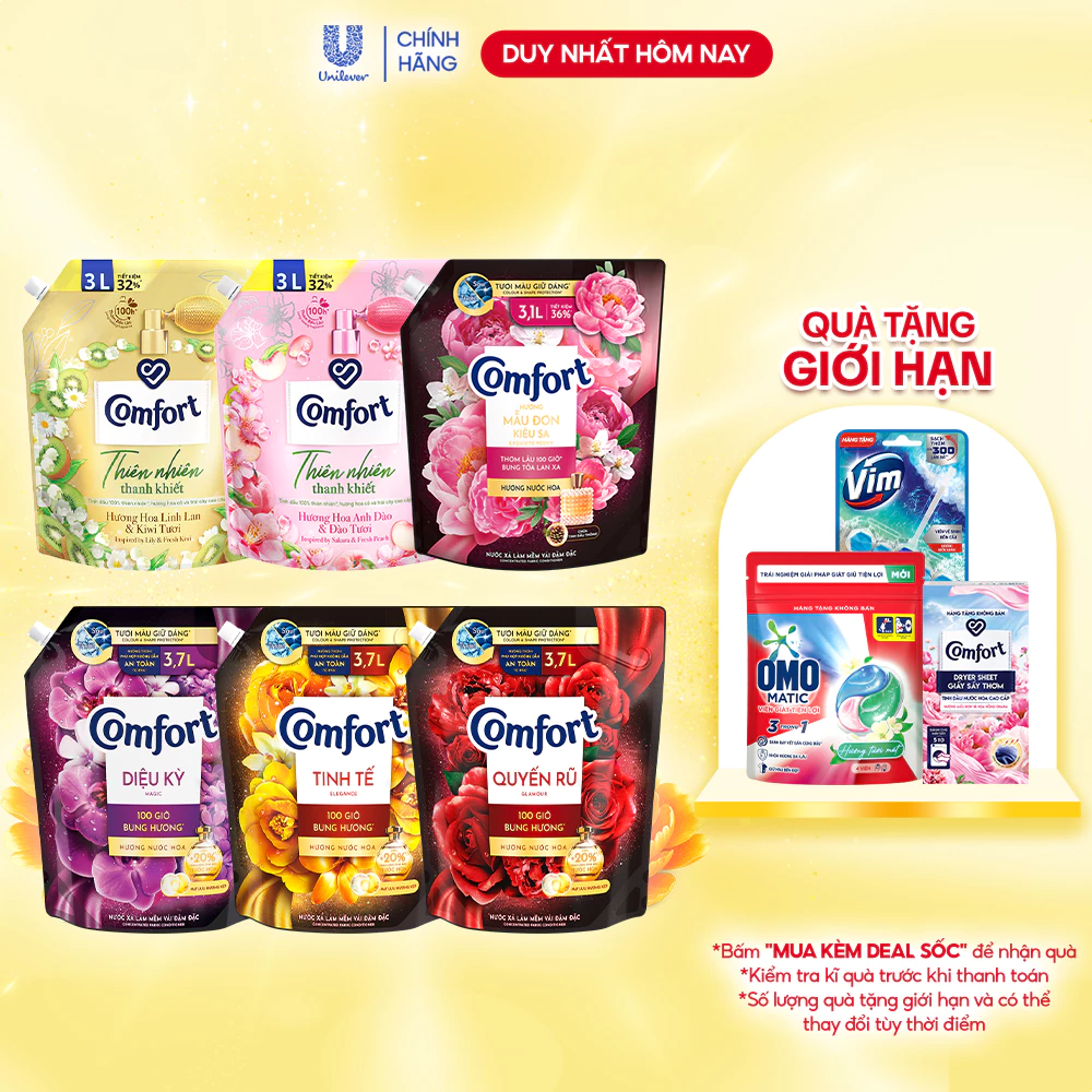 – Công thức dưỡng mềm vải ưu việt từ Comfort.