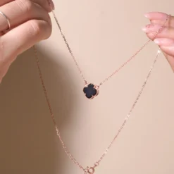 Đánh giá Dây chuyền bạc nữ mạ vàng hồng 18K cao cấp LAVESTA LAV039 cỏ 4 lá thiết kế đá đen sang chảnh, cuốn hút Larissa