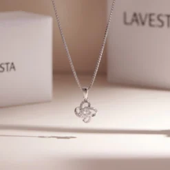 Dây chuyền nữ bạc xi bạch kim đá Moissanite 5 ly kiểm định GRA LAVESTA KC98 thiết kế cỏ 4 lá Donatella mang vẻ đẹp may mắn và hạnh phúc.