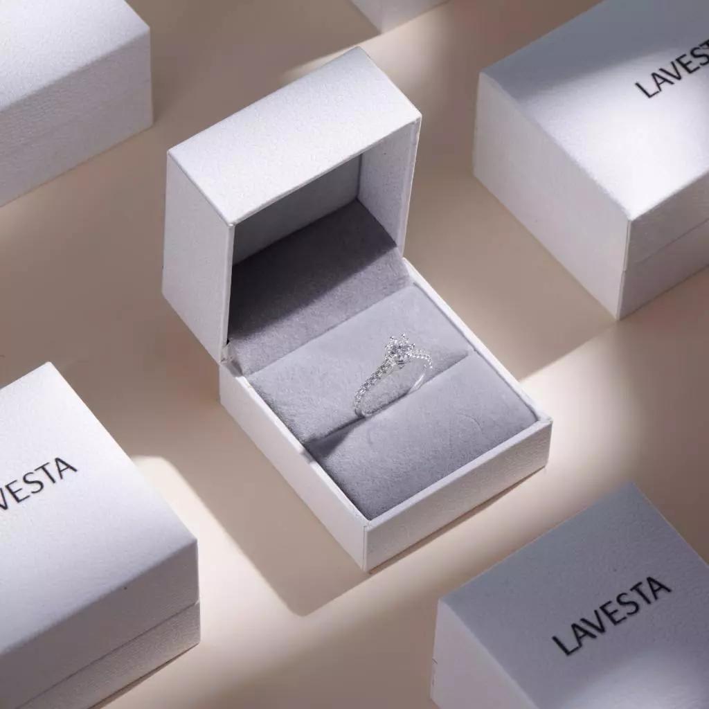 Nhẫn bạc nữ đá Moissanite 5 ly kiểm định GRA LAVESTA KC52 mặt đá tinh tế, sang trọng hiện đại