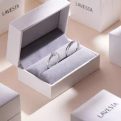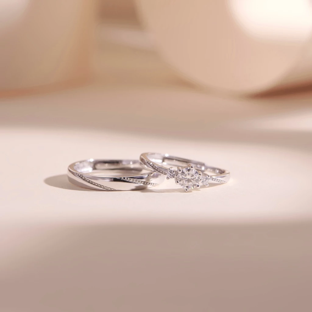 Nhẫn đôi nam nữ bạc xi bạch kim đá Moissanite kiểm định GRA LAVESTA KC95 Touch one’s heart