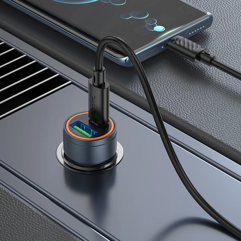 Tẩu sạc ô tô Hoco siêu nhanh 30w qc3.0 5a – Cốc 2 cổng oto xe hơi bền bỉ